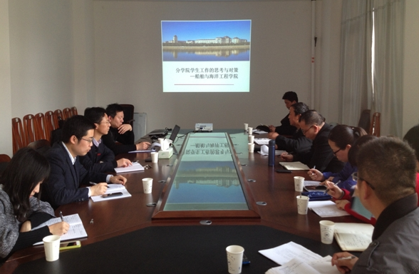 吴中平副书记听取了船海学院负责人对近一年来学院发展状况、存在的现实问题,和下一阶段工作目标的汇报和总结。并对船海学院目前学生工作中的重点、难点问题提出了建设性的意见和建议。