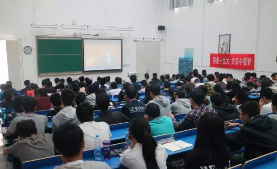 同学们认真聆听了习近平代表十八届中央委员会向大会作的题为《决胜全面建成小康社会夺取新时代中国特色社会主义伟大胜利》的报告。全体学生聚精会神,边看边记录,为报告内容所打动,所鼓舞。