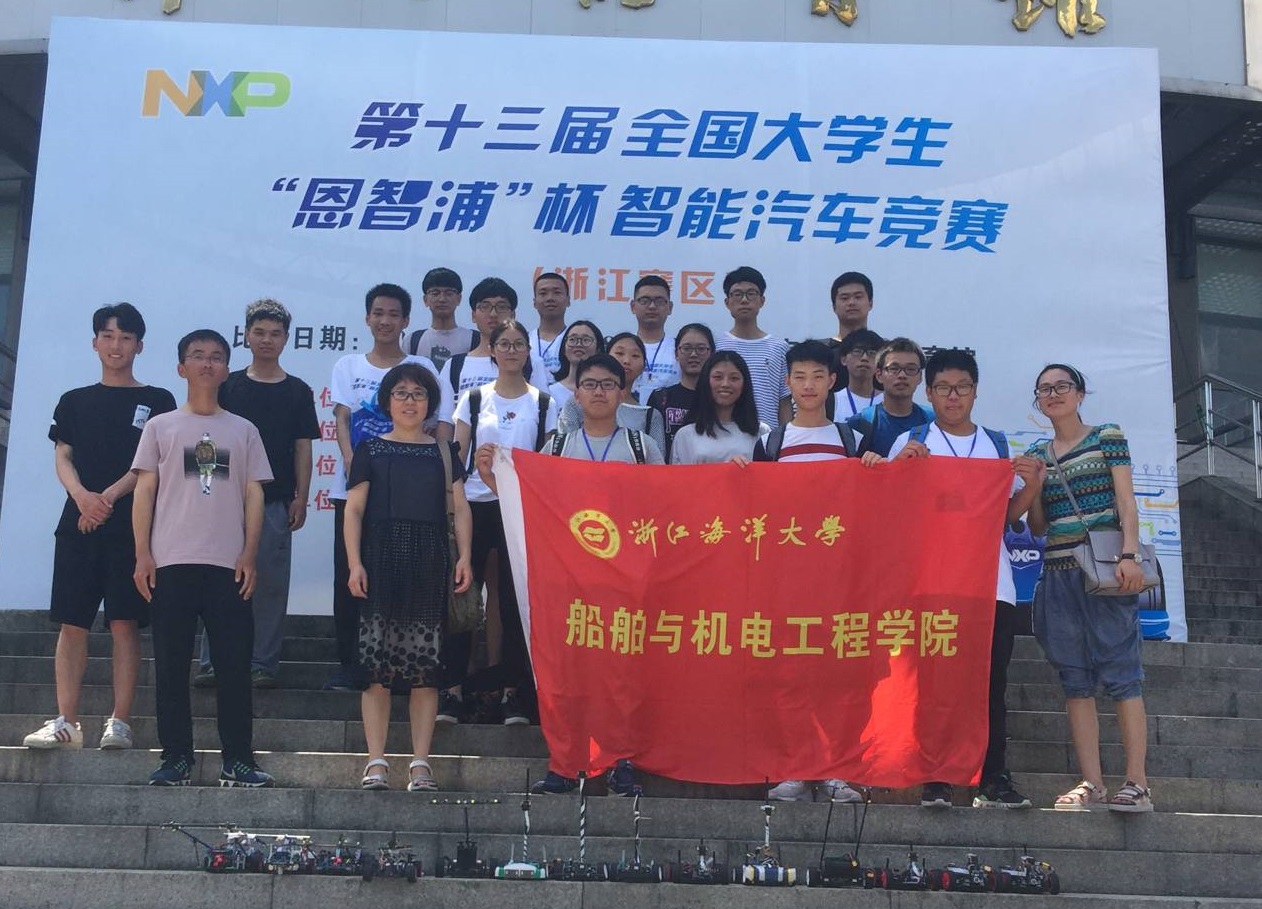 2018年7月17日至18日,第十三届全国大学生“恩智浦”杯智能汽车竞赛浙江赛区选拔赛,在鄞州体育馆如期举行。本次比赛由教育部高等学校自动化类专业教学指导委员会主办,浙江万里学院承办。来自全省45所高校的266支队伍八百多名师生参加了本届比赛。经过为期两天的激烈角逐后,浙江海洋大学“浙海大电磁三轮一队”(学生成员:胡安林、马晗、何振业;指导教师:叶继英、李莉莉)荣获三等奖。
