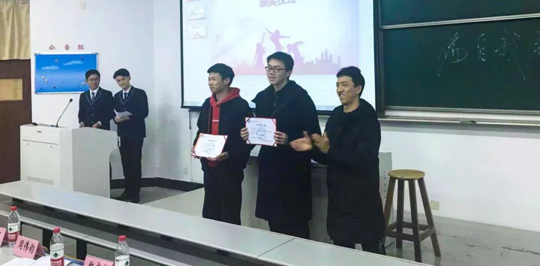 最后,对本次学风建设月总结表彰大会的优胜班级进行颁奖仪式,A18海工班获得一等奖;A18电气2班,A18船舶中外班获得二等奖;A18电气3班,A18船舶1班,A18机械2班获得三等奖。由周伟钧老师,付宗国老师,郑宇杭分别为获得一二三等奖的班级颁奖并合影留念。