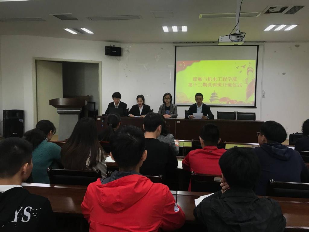 4月15日中午,船舶与机电工程学院第十三期入党积极分子培训班开班仪式,在工科楼119顺利举行。船舶与机电工程学院党委副书记何晔老师,船舶与机电工程学院团委副书记付宗国老师出席本次仪式,林雨珊同学主持本次开班仪式。