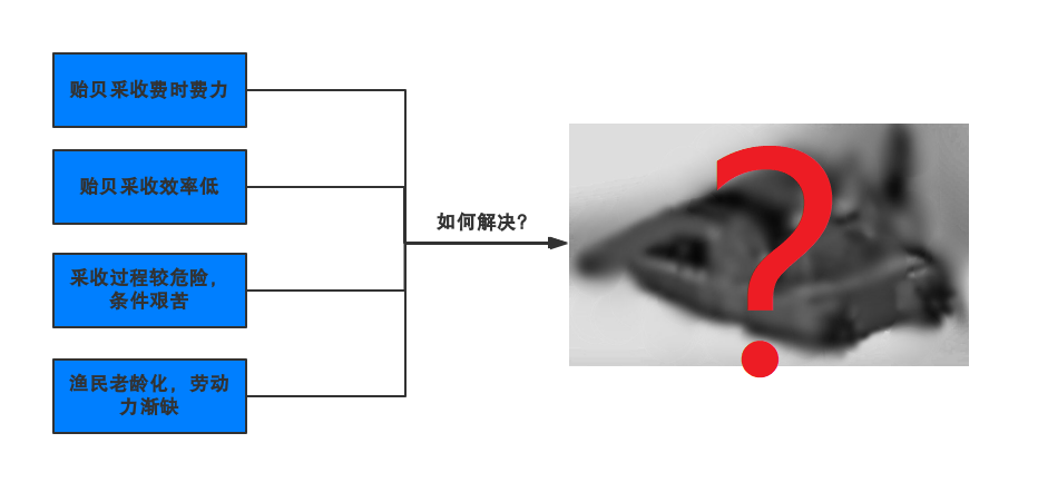 同时随着“中国制造2025”计划的推动,机器换人以成为大势所趋,然而舟山当地贻贝收获体系的机械自动化程度相对较低,养殖户的工作环境艰苦。拾贻调查小组针对舟山嵊泗岛贻贝收获进行实地调研,实际深入了解渔民日常工作情况及现今贻贝收获方法。