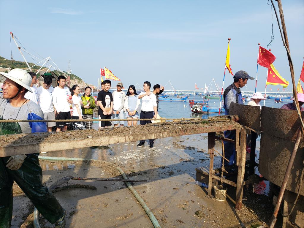 在嵊泗县嵊山镇团结贻贝养殖专业合作社,实践团成员了解到该合作社为成员提供农业生产资料的购买及养殖产品的销售、初级加工,为社员采购苗种、养殖技术培训等相关服务。合作社负责人为实践团介绍贻贝筏式养殖技术,贻贝包苗方法,贻贝采收作业过程等。在交流中,针对贻贝加工各道工序中的存在的不足,实践团就提出了改进意见,并了养殖户对技术装备目标需求。
