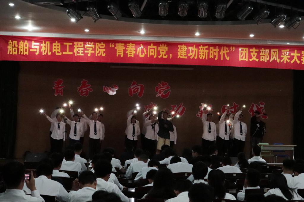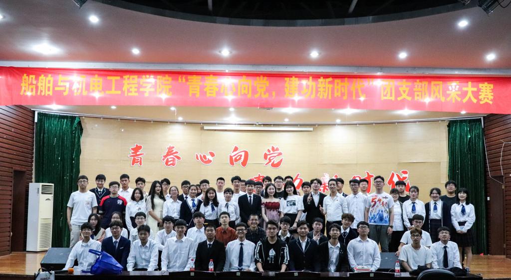 5 月12日晚,船舶与机电工程学院“青春心向党,建功新时代”团支部风采大赛在定海校区活动中心举行。船舶与机电工程学院团委副书记付宗国、定海学管办周伟钧出席活动。船舶与机电工程学院18级各班级团支部参与活动。