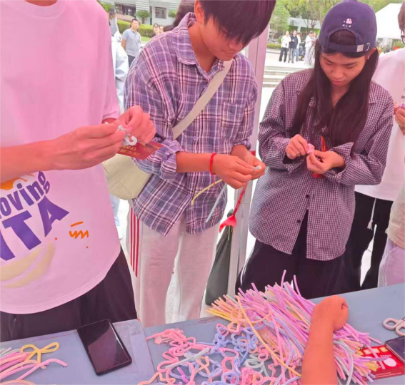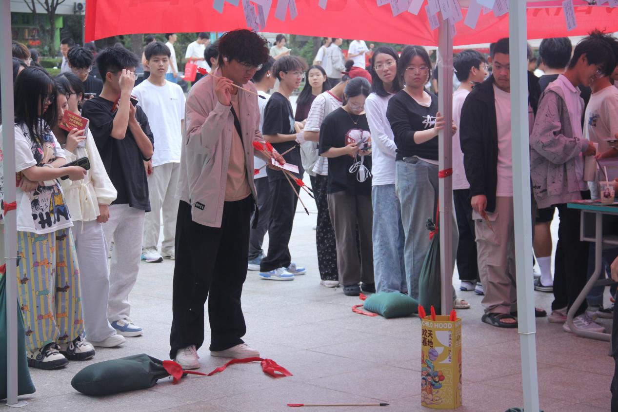 活动现场气氛热烈,主题鲜明。反邪教主题海报展通过图文并茂的形式,系统揭示了邪教的危害性、常见伪装形式及法律后果,引导学生树立正确的价值观和法治观念。同步开展的反邪教知识游园会则融合“游戏互动 知识传播”模式,设置“反邪教知识灯谜会”“拒绝邪教投壶大挑战”“扭扭棒创意制作”等趣味环节,学生们在参与中学习反邪知识,在互动中增强防范意识。活动现场还设置了梯度兑奖机制,有效激发了学生的参与热情,实现了“寓教于乐”的宣传效果。