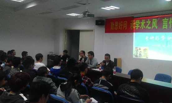 本次交流会由学院研究生主持,研究生们为现场同学们分享了自己在考研中的经历和感悟。分析了近年来考研比例情况;强调了数学、英语等基础课程的重要性;指出了要多看资料书,多做题,做到融会贯通;同时要认清自己的目标,学玩有度,不要给自己施加太大压力;此外,最重要的是要坚信考研能带给自己与众不同的气质,抵制诱惑的决心与永不放弃的信念。随后,在座的各位同学就交流会过程中自己的疑问向研究生提问,研究生也耐心的做出了解释。最后,进行了考研调查问卷等工作。