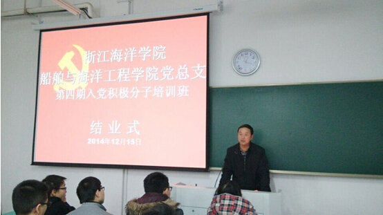 12月15日中午,我院党总支第四期入党积极分子培训班正式结业。结业式由学院党总支书记冯相忠教授主持,学院组织员吴俊毅老师,党总支组织委员陈庭勋老师、宣传委员徐向飞老师以及党训班116名入党积极分子参加了此次结业式。