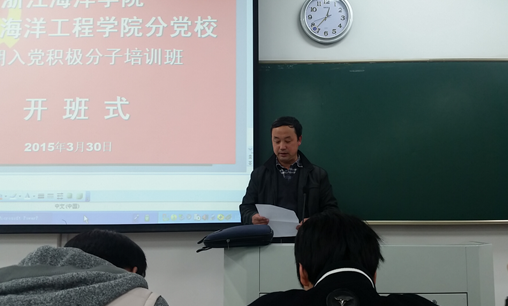 3月30日中午,我院在工科楼118教室举行了船舶与海洋工程学院分党校第五期党课学习班开班典礼。开班仪式由学院组织员吴俊毅老师主持,学院党委书记冯相忠、组织委员陈庭勋参加了开班式。