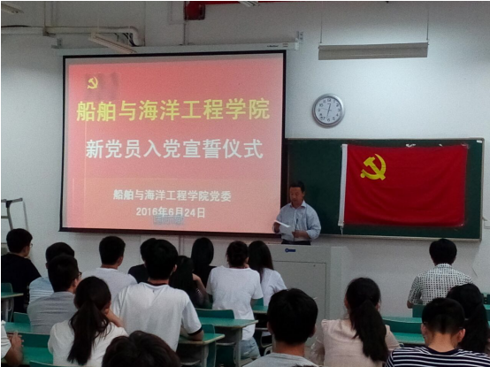 6月24日,正值党的生日来临之际,浙江海洋大学船舶与海洋工程学院党委在工科楼118举行了新党员入党宣誓仪式。学院党委书记冯相忠,分团委书记徐向飞,全体党员以及入党积极分子代表参与了本次会议。