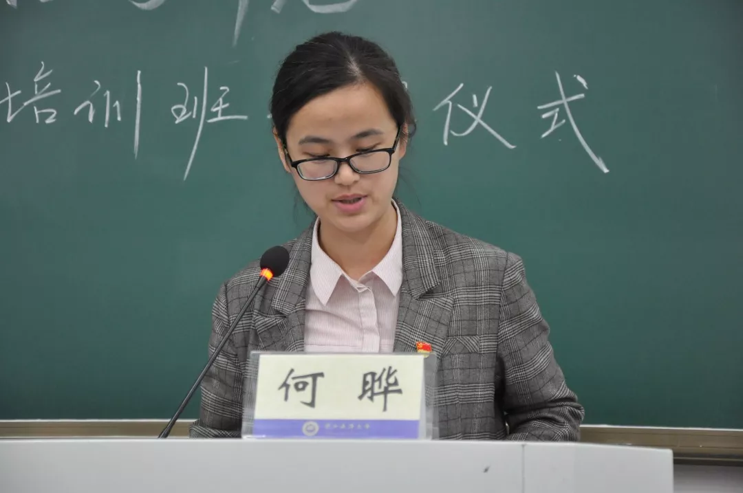 何晔老师上台讲话,今年是欢庆中华人民共和国成立70周年,不久前党中央召开了党的十九届四中全会。在这个重要时期,参加入党积极分子培训班不仅是一次难得的学习机会,也是政治生活中的一件大事,希望端正态度,正确认识举办入党积极分子培训班的重要意义。她强点加入中国共产党必须有强烈的理想信念,对党忠诚,希望学生们做到真心爱党,起带头模范作用,全心全意为人民服务。随着开班仪式结束,紧接着是何晔老师为新学员上第一课: 《按照党员的标准要求自己,争取早日加入中国共产党》。
