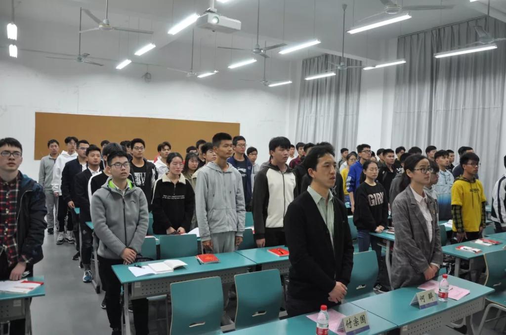 在嘹亮的国歌声中,开班式开始,肖淇元同学宣读了学院党训班学员学习纪律规定,学员们应从各方面严格要求自己,不辜负组织的期望,珍惜来之不易的学习机会。最后党训班林晟杰代表第十四期入党积极分子培训班学员发言。