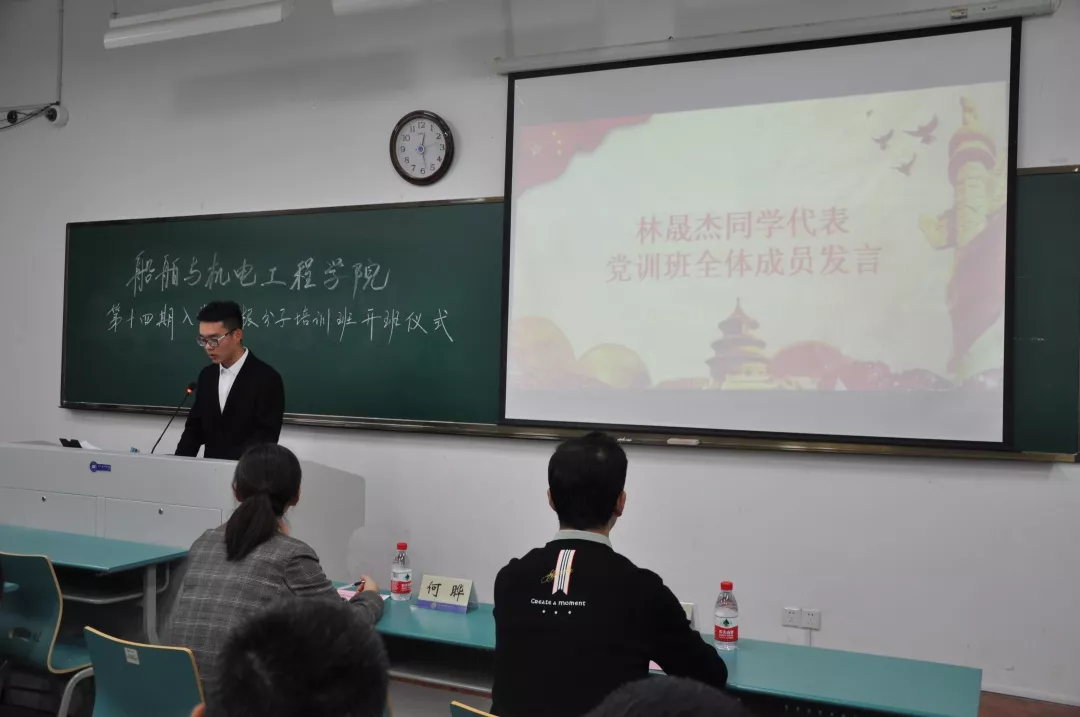 2019年11月12日中午,船舶与机电工程学院第十四期入党积极分子培训班开班仪式,在教学楼102顺利举行。船舶与机电工程学院党委副书记何晔老师,船舶与机电工程学院团委副书记付宗国老师出席本次仪式,阙鑫华同学主持本次开班仪式。
